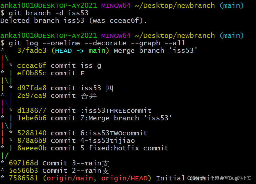 既然你的修改已经合并进来了,就不再需要 iss53 分支了。 现在你可以在任务追踪系统中关闭此项任务,并删除这个分支。