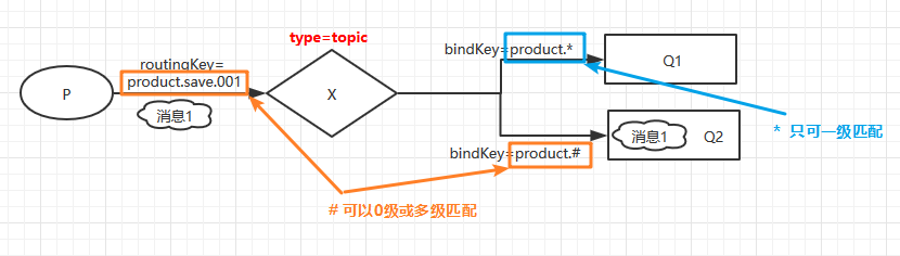 每个队列在新建时,默认会绑定到 默认交换器(名字为空字符串),绑定的路由键名称和路由键名称一致。 - topic: 根据 routingKey 和 bindingKey 进行匹配。bindingKey