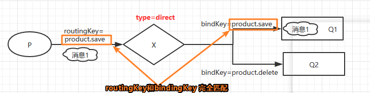 - direct:direct类型的Exchange路由规则也是非常简单,它会把消息路由到哪些 binding key 与 routing key 完全匹配的Queue中。