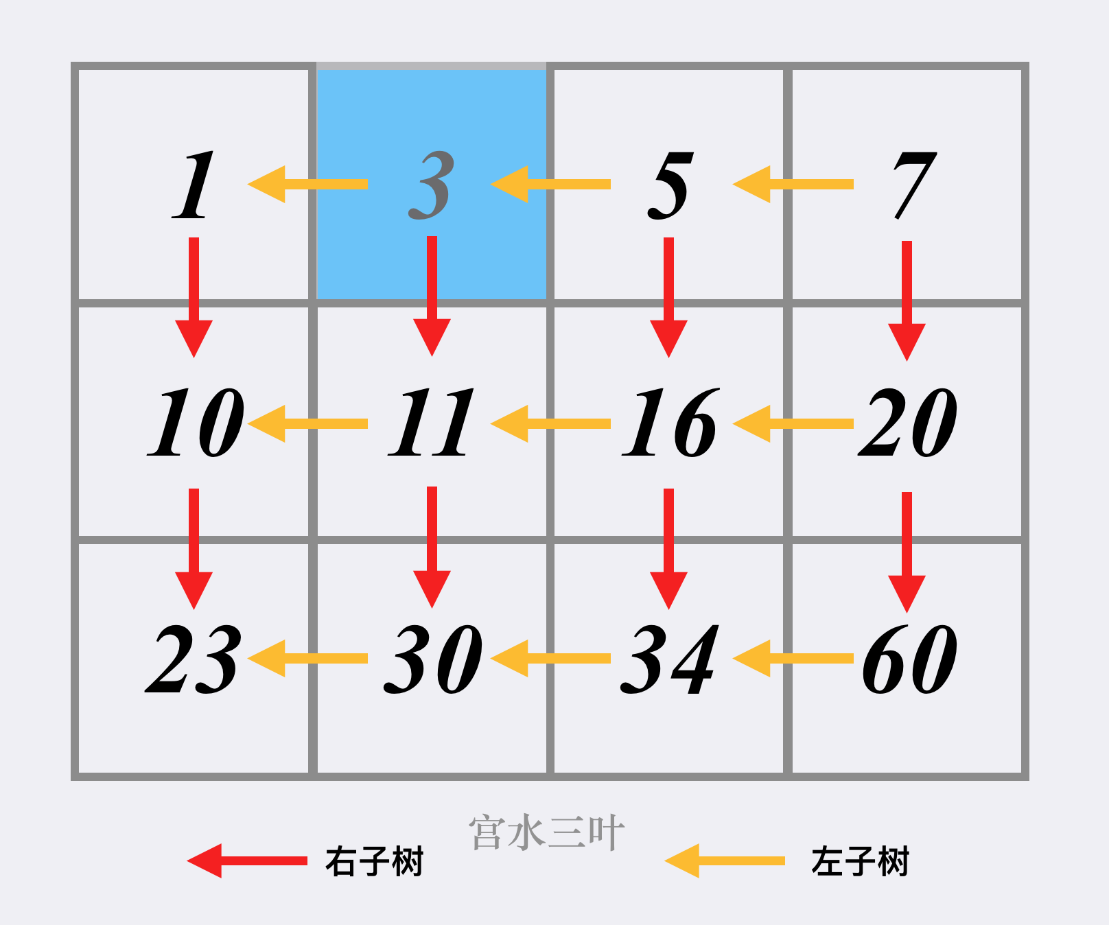 - 如果target比当前值大,列增加。