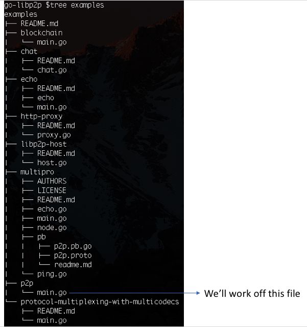 这里,我们在 examples子目录下进行开发,因此在 go-libp2p的examples下创建一个你自己的目录