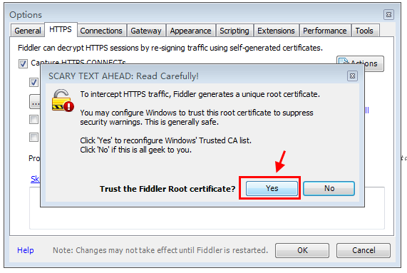 新解决方案 重置Fiddler,具体步骤: Tools > Fiddler Options > HTTPS > “Certificates generated by MakeCert ...