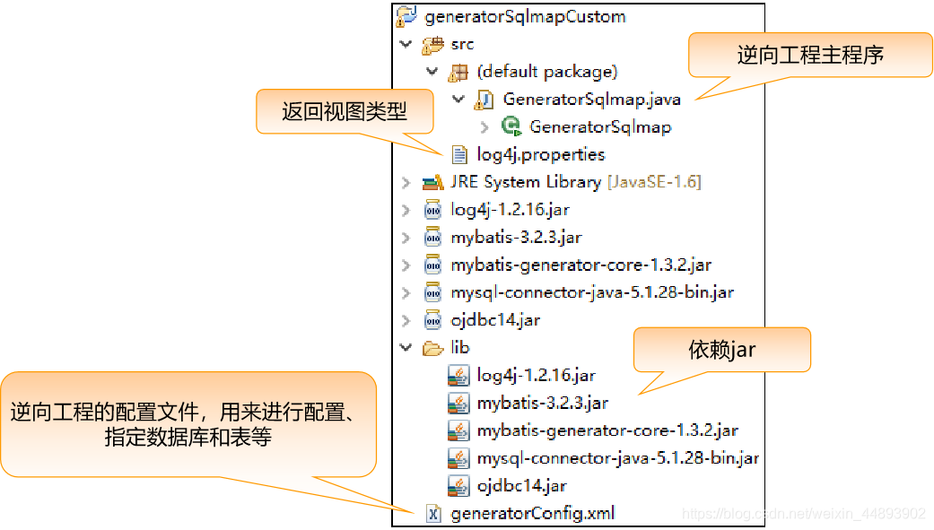 generatorConfig.xml配置文件。 运行逆向工程的主程序,代码就会自动生成。在运行程序之前,需要在generatorConfig.xml配置文件中配置数据库连接信息、配置POJO类、Mapper接口和Mapper映射文件生成的位置以及指定数据表。