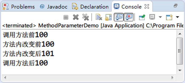 分析:调用方法时,实参为形参赋值,形参的值发生变化,而实参没有被改变。