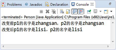 System.out.printf("改变后p1的名字是%s,p2的名字是%s\n", p1.name, p2.name);