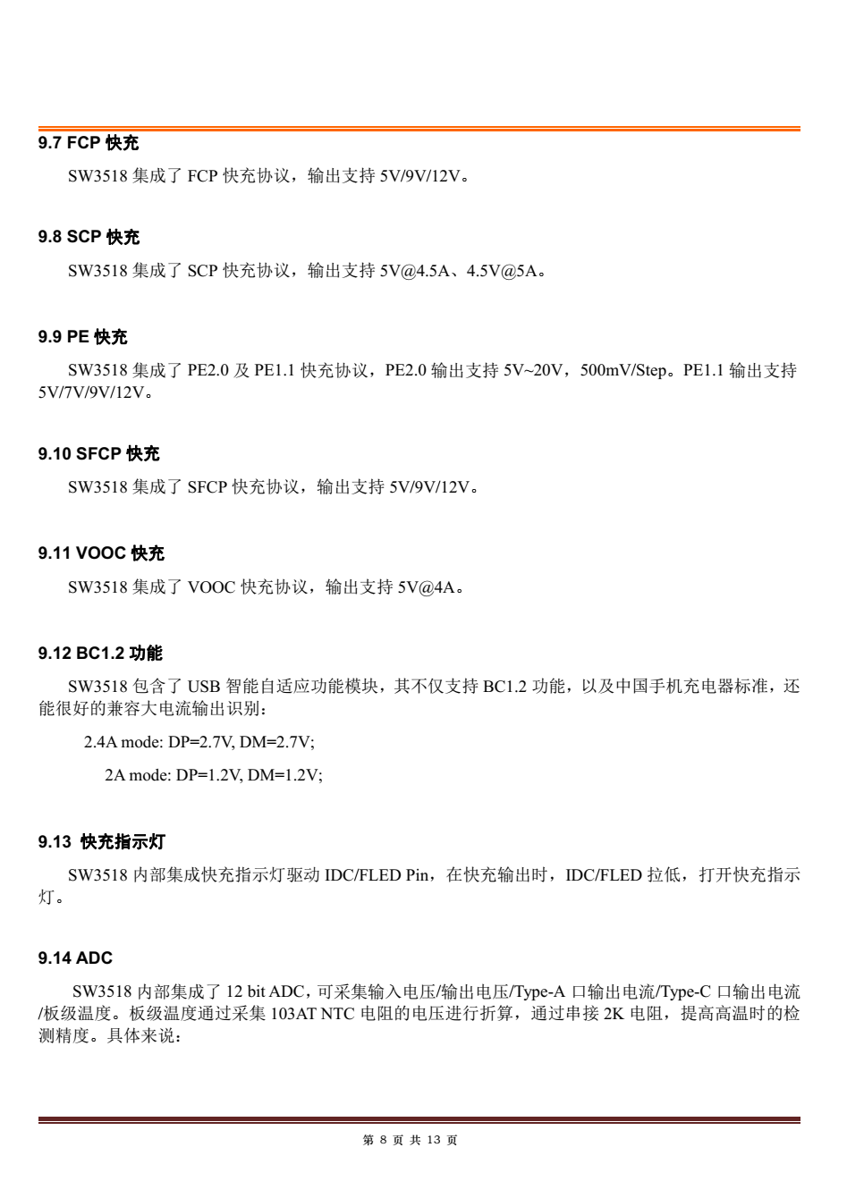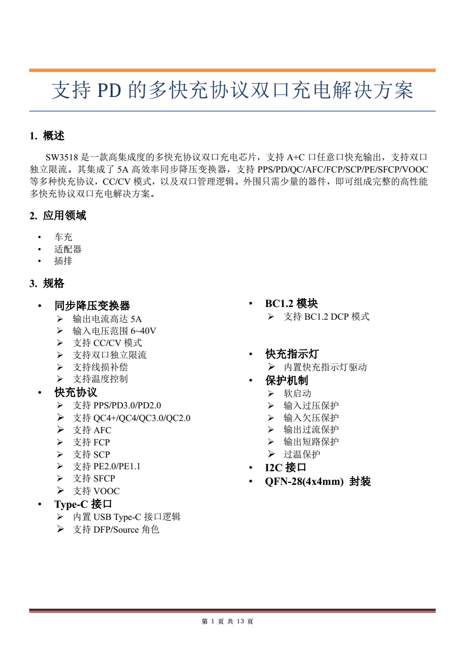 SW3518 是一款高集成度的多快充协议双口充电芯片, 支持 A+C 口任意口快充输出, 支持双口
