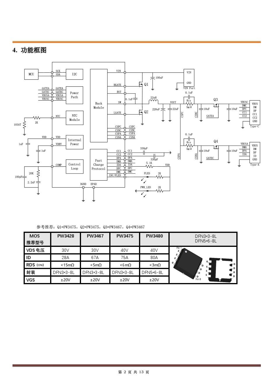 等多种快充协议, CC/CV 模式, 以及双口管理逻辑。 外围只需少量的器件, 即可组成完整的高性能
