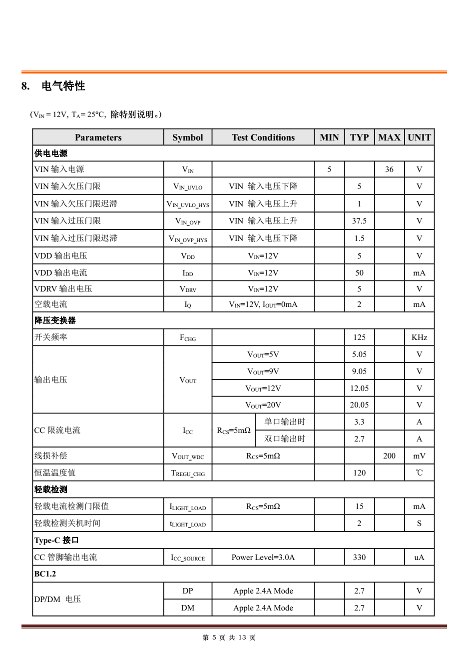 独立限流。 其集成了 5A 高效率同步降压变换器, 支持 PPS/PD/QC/AFC/FCP/SCP/PE/SFCP/VOOC