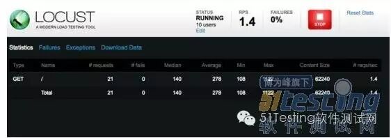 locust提供web ui界面,能够方便用户实时监控脚本运行状态。