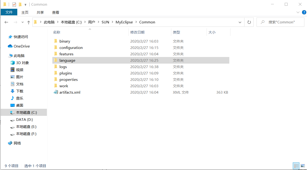 1:将汉化包中的language的文件夹全粘贴到到”MyEclipse安装路径/Common”文件夹里面。