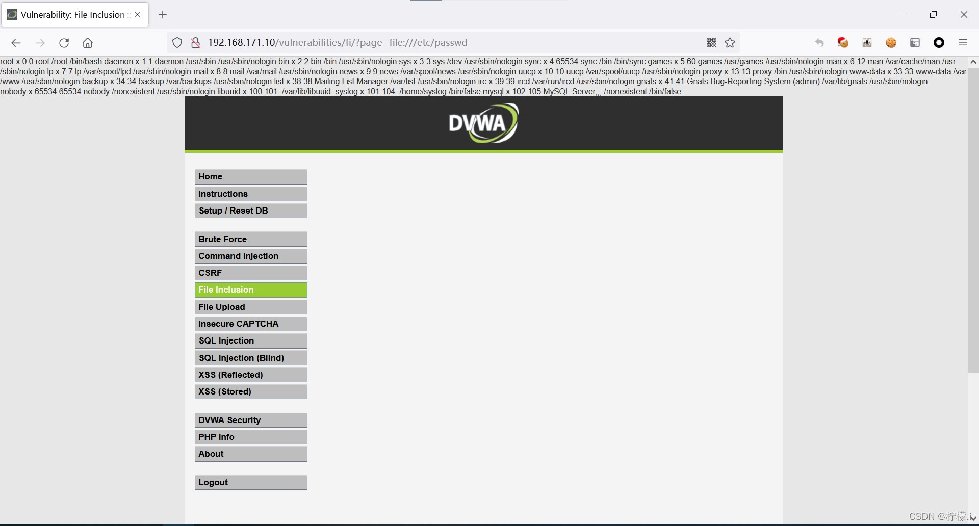 - DVWA 黑客攻防演练(四)文件包含 File Inclusion