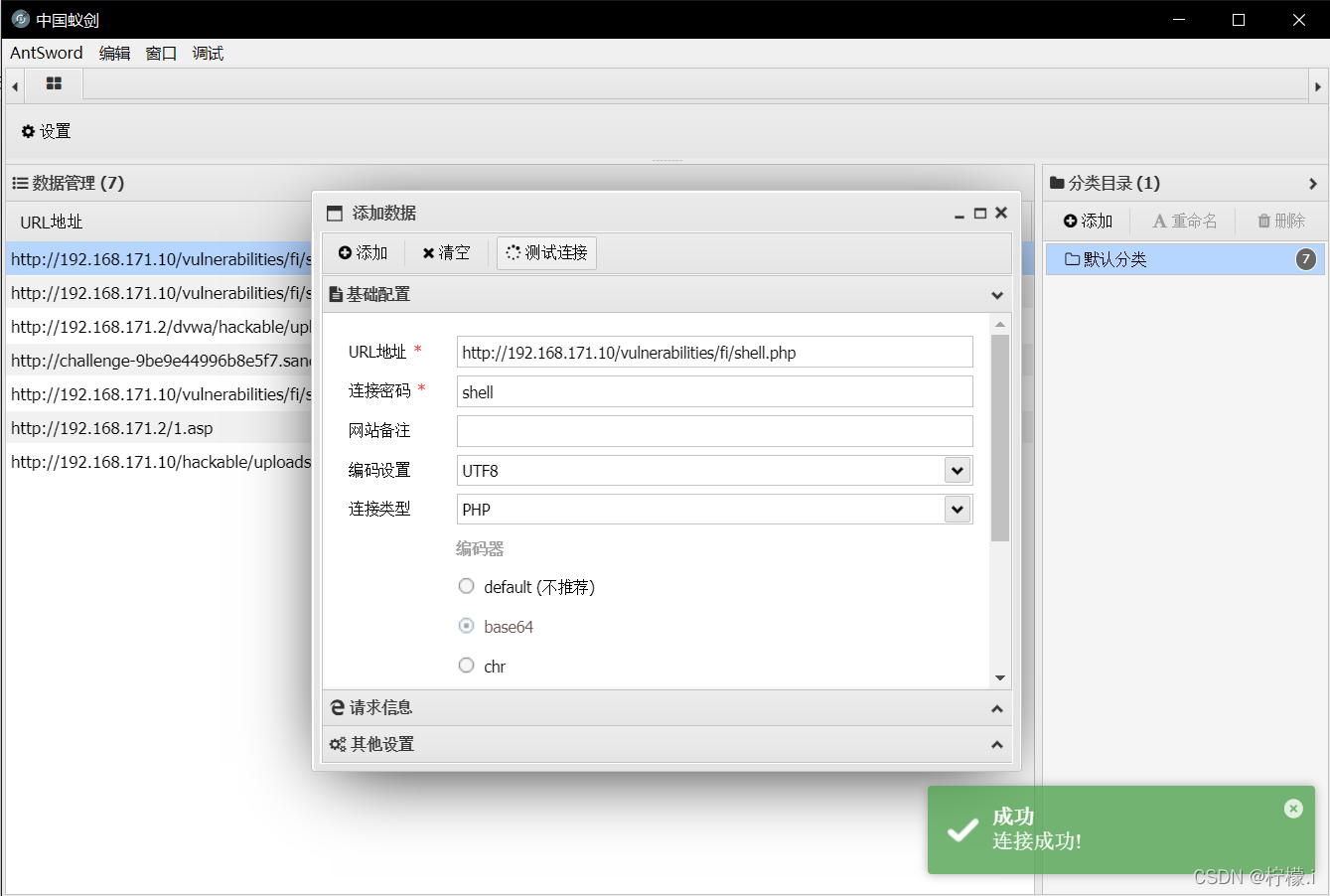 然后用靶机网站文件包含打开服务器的文件,写入一句话木马就成功了。