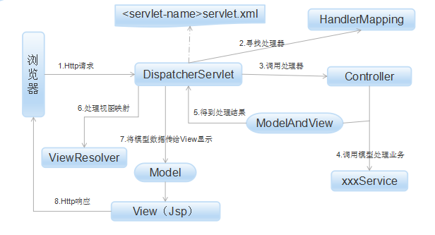 (1) Http请求:客户端请求提交到DispatcherServlet。