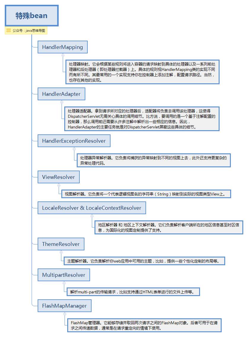 spring mvc同时提供了很多特殊的注解,用于处理请求和渲染视图等。DispatcherServlet初始化的过程中会默认使用这些特殊bean进行配置。如果你想指定使用哪个特定的bean,你可以在web应用上下文WebApplicationContext中简单地配置它们。