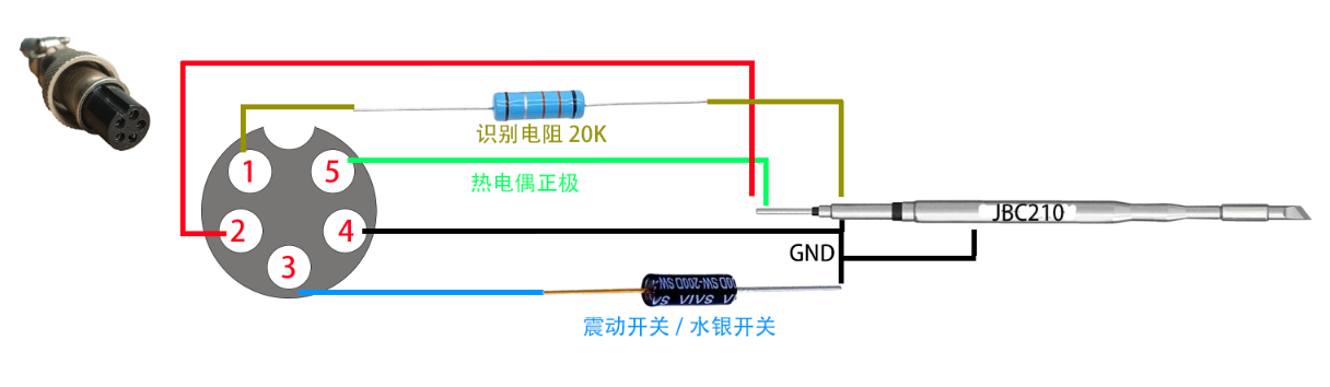 通过三个电极中最细的电极引出;- jbc245烙铁头的接线方法 与 实时温度的检测电路;
