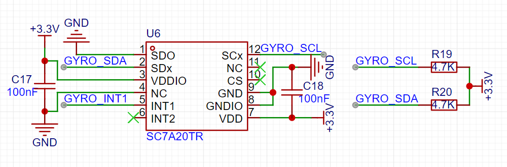 - 此处以GYRO“三轴加速传感器”SC7A20检测姿态与加速度为例: