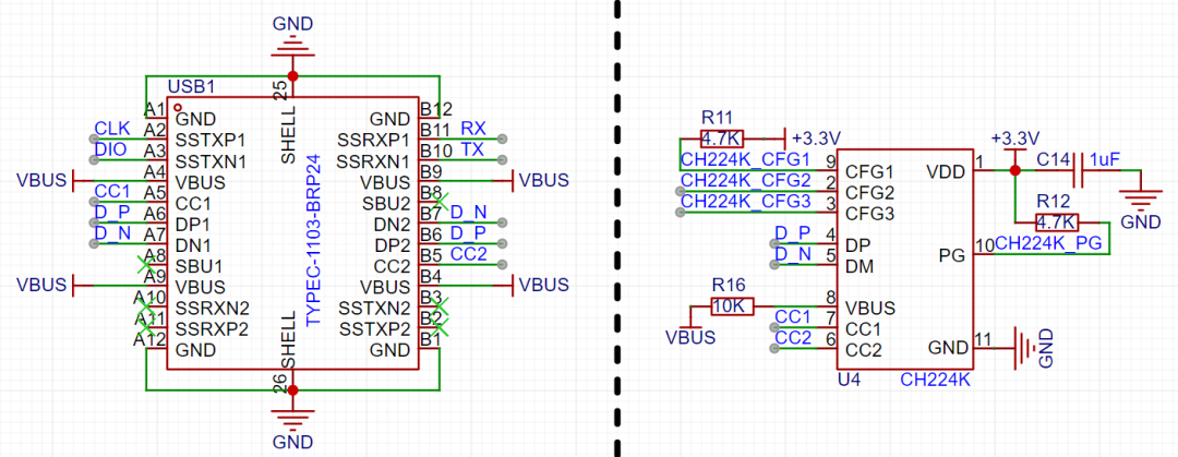 常用CH224以Type-C供电协议协商取得Type-C接口的12V/24V/36V/48V电源,请参考Type-C的官方标准;