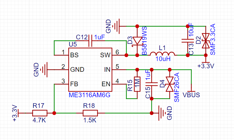 这里以STM32需要的3.3V电压为例(VBUS经过DC变换芯片,得到3.3V, 芯片实现上多用MOS管)