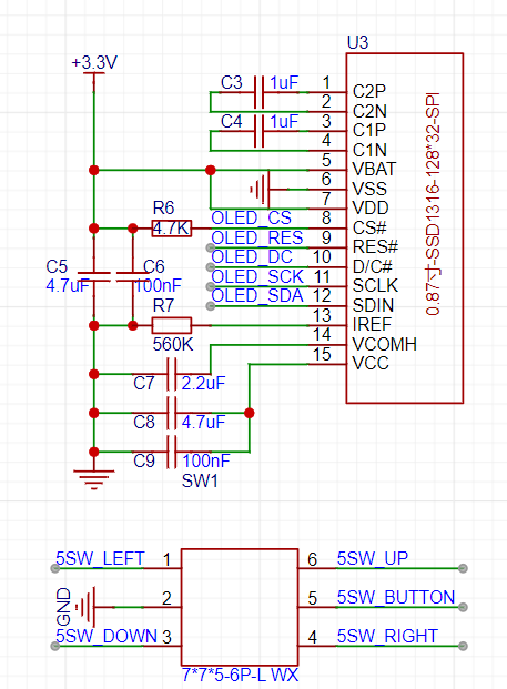 这里以OLED显示屏 与“五向按键”(与"摇杆"不同)为例: