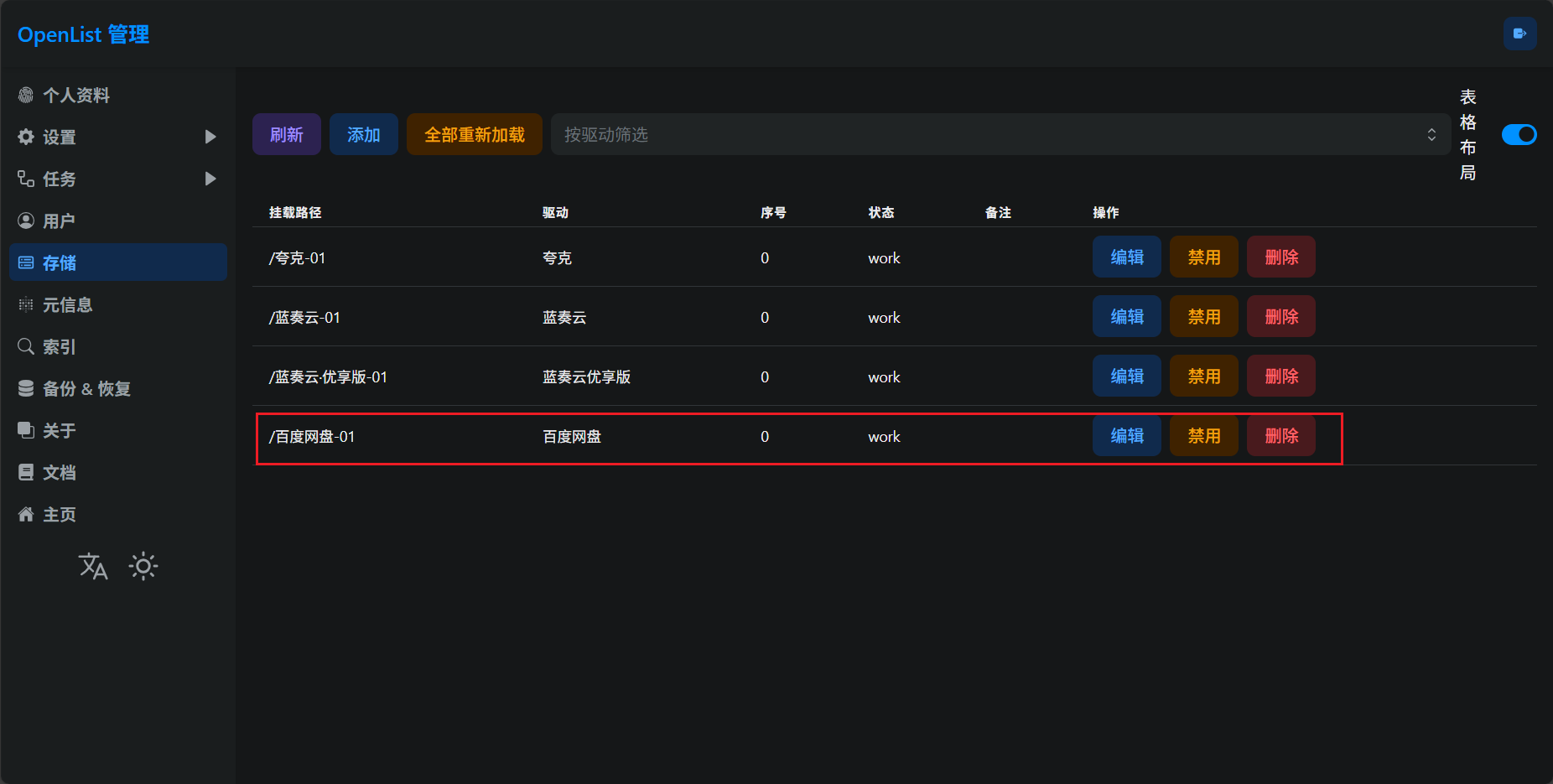 OpenList挂载「百度网盘」