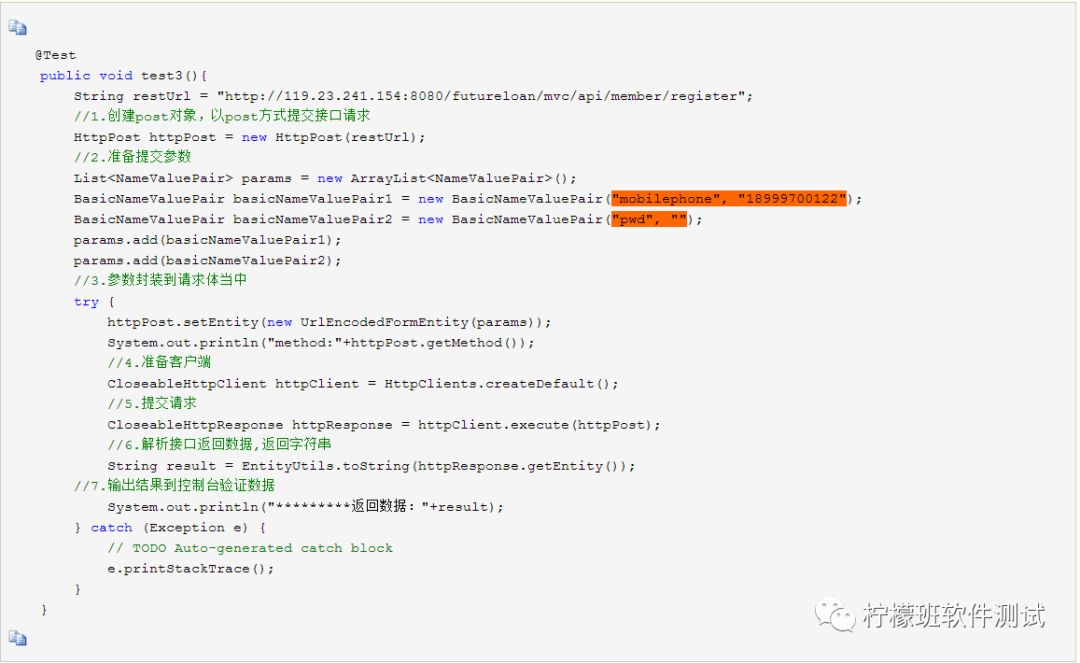 测试方法代码: