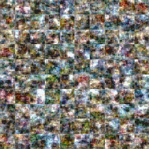我们展示了下面右图模型中的一些 32x32 图像样本。左图是来自 DRAW 模型的用于比较的更早期样本(vanilla VAE 样本看起来甚至会更糟糕和更模糊)。DRAW 模型一年前才发布,再次凸显了训练生成模型中所作出的快速进步。