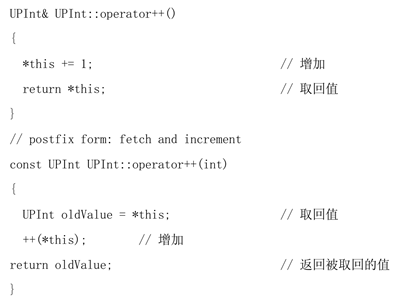 二是其效果跟调用一次 operator++(int) 效果一样,这是违反直觉的。另外,后置式操作符使用 operator++(int),参数的唯一目的只是为了区别前置式和后置式而已,当函数被调用时,编译器传递一个0作为int参数的值传递给该函数。