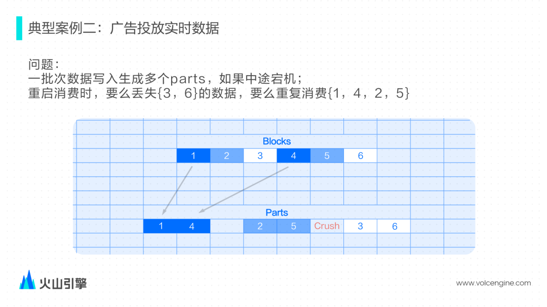 挑战:ClickHouse 缺少事务支持。一批次写入只写入部分 part 后出现宕机,因为没有事务保障重启后可能出现丢失或者重复消费的情况。