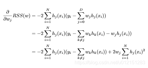 上式化简为∂∂wjRSS(w)=−2ρj+2wjzj∂∂wjRSS(w)=−2ρj+2wjzj \frac{\partial}{\partial w_j}RSS(w)=-2\rho_j+2w_jz_j