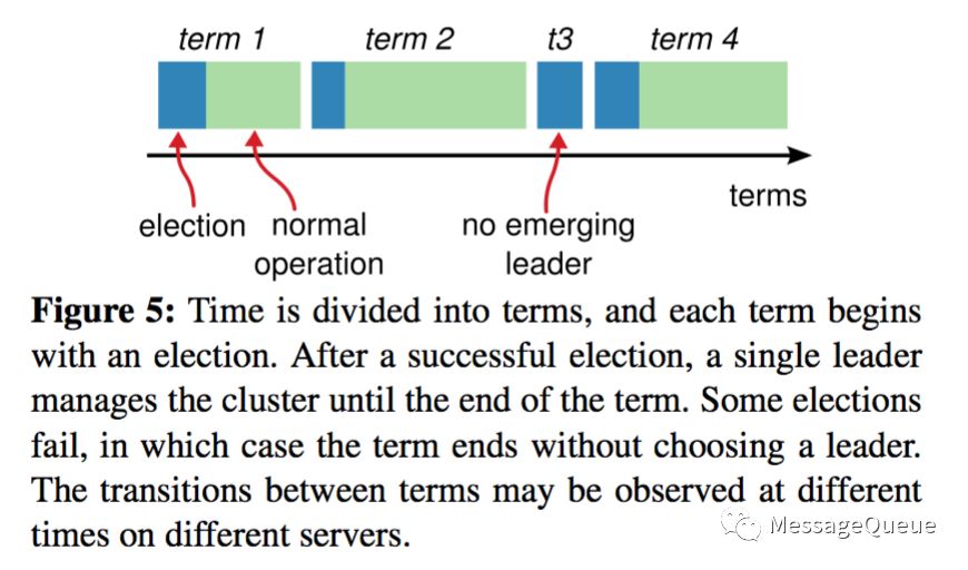 Raft把时间切割为任意长度的任期,每个任期都有一个任期号,采用连续的整数。