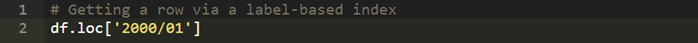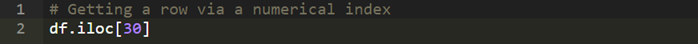 正如loc和iloc,上述代码将返回一个series包含你所索引的行的数据。