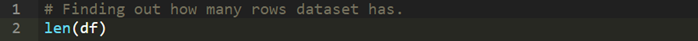 另一件你很想知道的关于你的数据的重要的事情是数据一共有多少条目。在Pandas中,一个条目等同于一行,所以我们可以通过len方法获取数据的行数,即条目数。