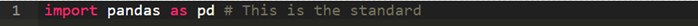 这是导入Pandas的标准方式。显然,我们不希望每时每刻都在程序中写’pandas’,但是保持代码简洁、避免命名冲突还是相当重要的。因而我们折衷一下,用‘pd’代替“pandas’。如果你仔细查看其他人使用Pandas的代码,你会发现这条导入语句。