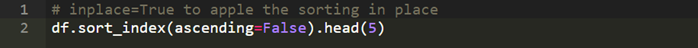 通常我们都希望索引是整齐有序地。我们可以在Pandas中通过调用sort_index来对dataframe实现排序。