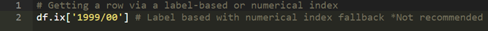 前几部分为我们展示了如何通过列操作来获得数据。实际上,Pandas同样有标签化的行操作。这些行标签可以是数字或是其他标签。获取行数据的方法也取决于这些标签的类型。