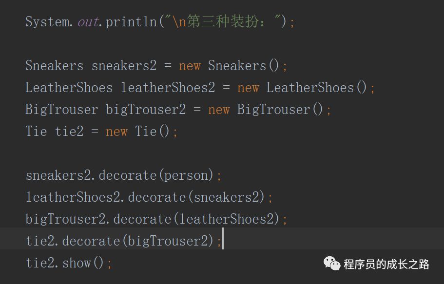 这似乎和某种设计模式有关,难道是建造者模式吗?不对,建造者模式要求建造的过程必须是稳定的,而这个穿搭的过程是不固定的,一个有个性的人又无数种方案。