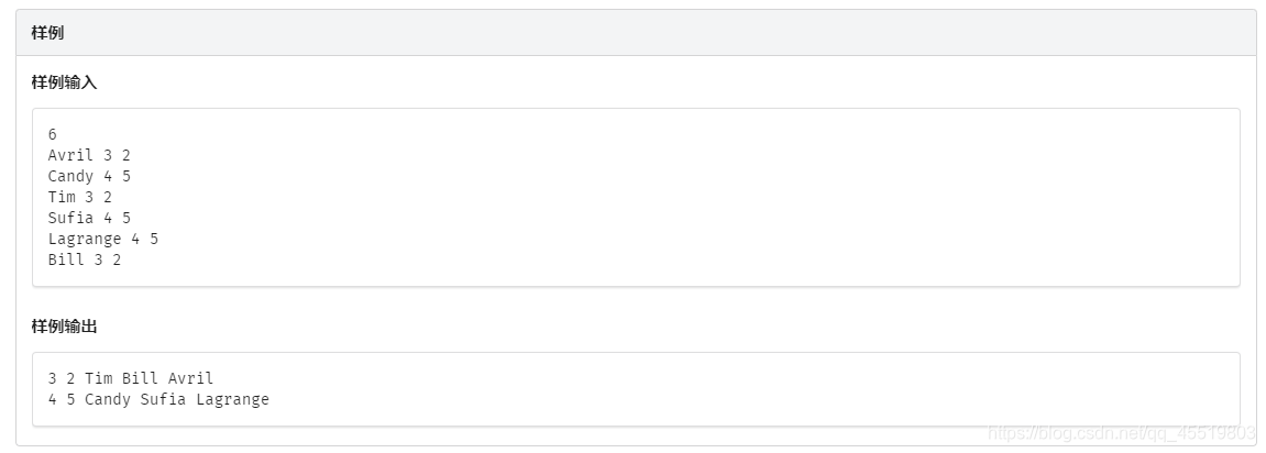 cout << a[i].y << ' ' << a[i].r << ' ' << a[i].s << ' ';