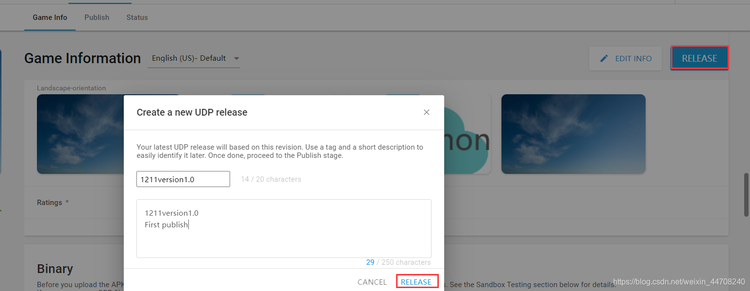 这里我就是自测发现有问题了,所以我在Game Info中删除原来APK,重新提交了一个APK,继续Release,新的打包后的包如下:
