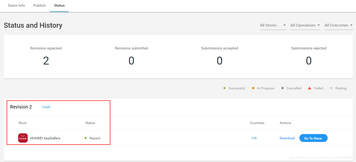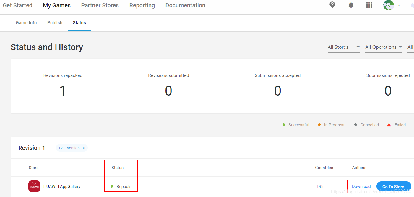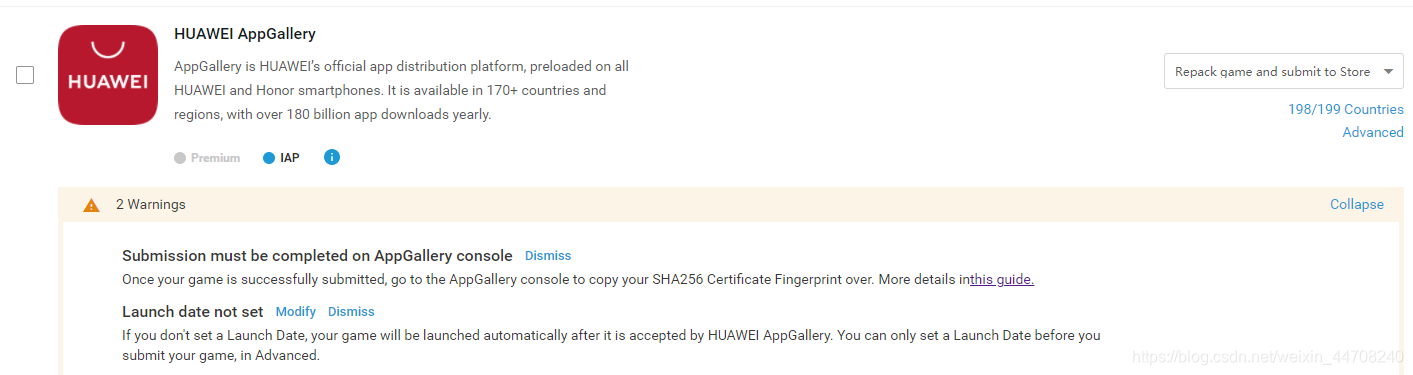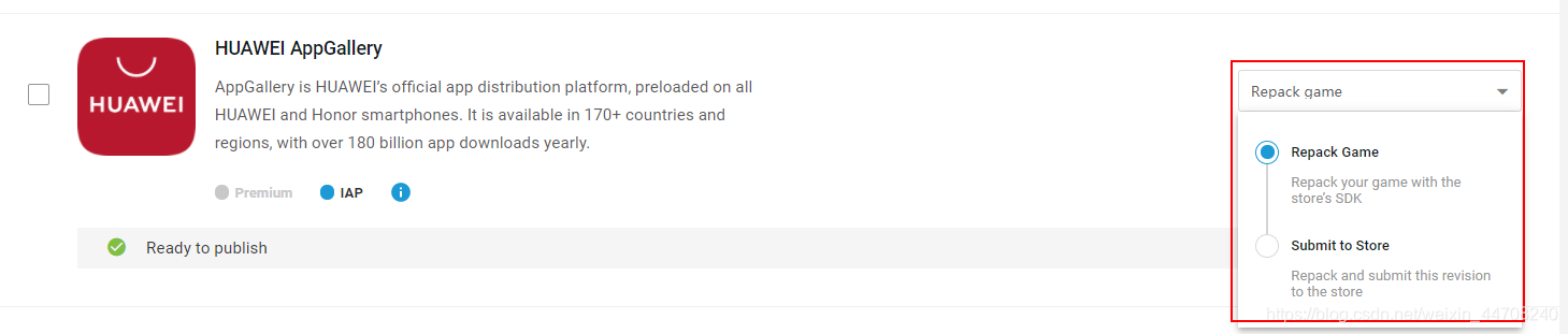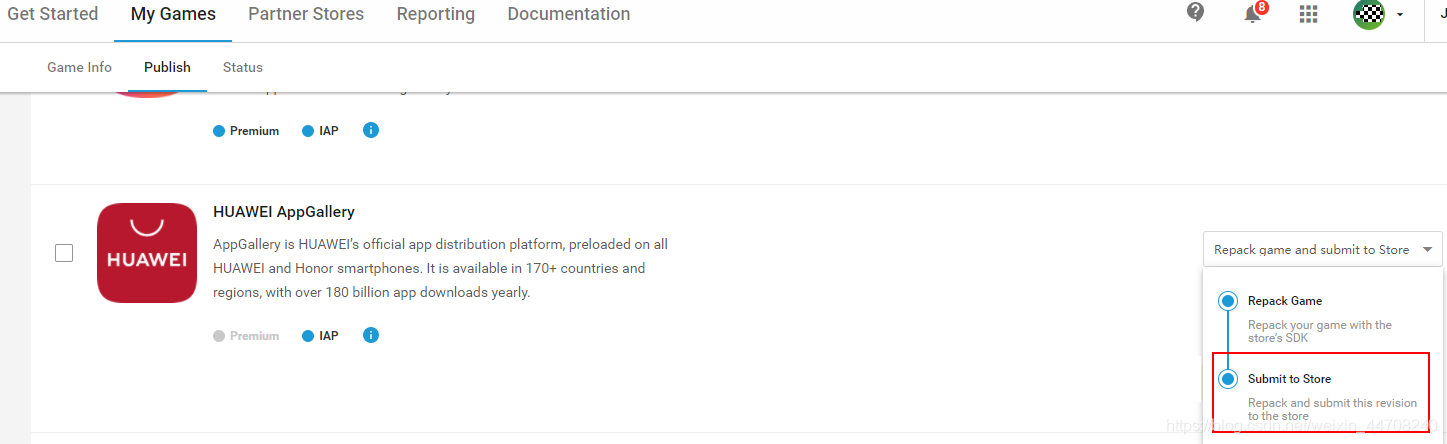 备注下:之前我一直以为选择“Repack Game”后自测包没有问题后,可以通过“Go to Store”直接去华为这边提交审核,但是实际操作发现跳转过去后游戏信息、商品等信息都是没有的,需要自己再填写一遍。因此这种操作是非常不推荐的。主要有以下几点: