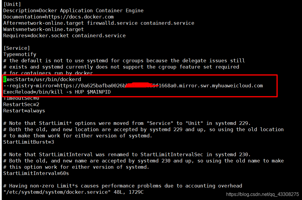 ExecStart=/usr/bin/dockerd --registry-mirror=你的华为云加速地址