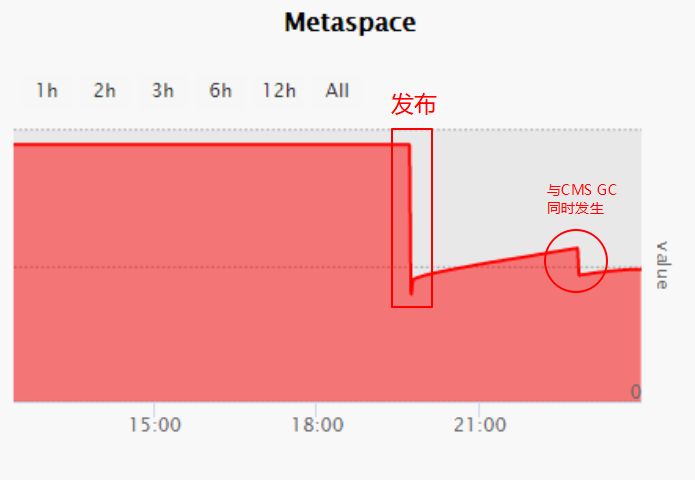 于是怀疑是 Metaspace 占用达到了设置的参数 MetaspaceSize,发生了 GC。