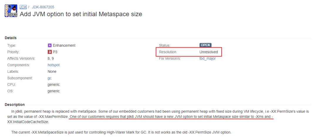 在 openjdk 的 bug 列表中,找到一个 关于 Metaspace 初始大小的 bug,并且尚未解决。