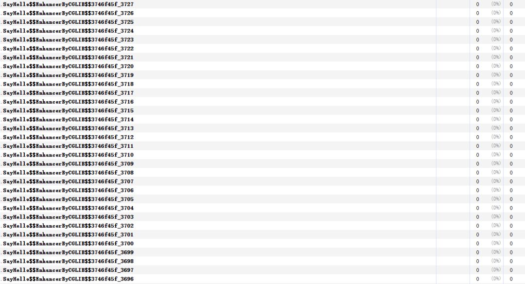 从堆 Dump 中也可以发现,有很多被 CGlib 所代理的 SayHello 类对象。