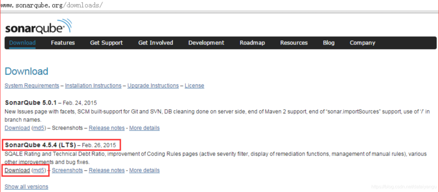下载最新 LTS 版的 SonarQube 安装包(当前版本为 sonarqube-4.5.4.zip):
