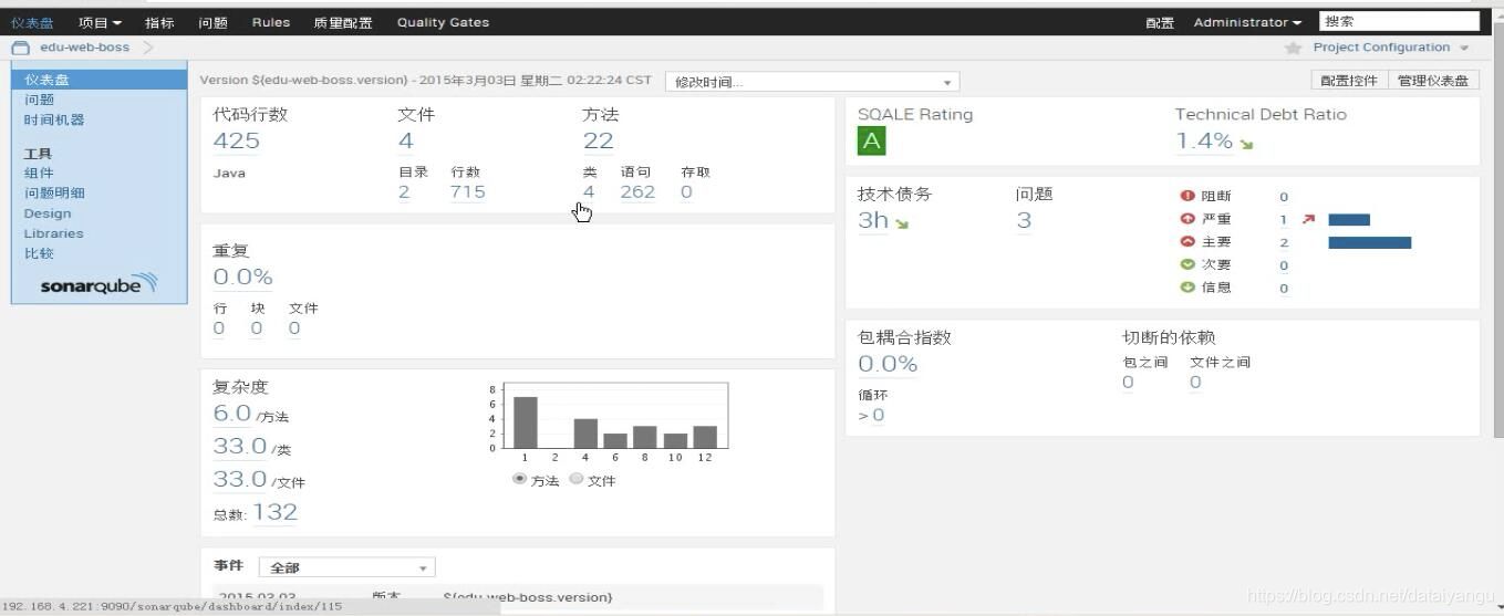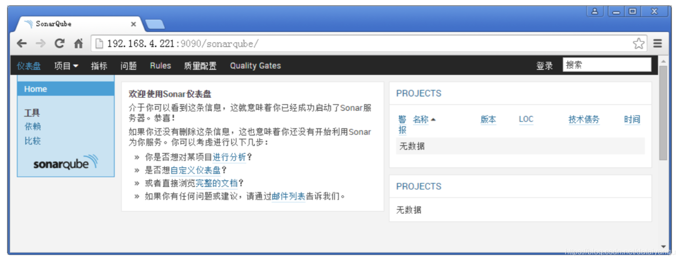 成功执行完分析命令后便可到 Web Server(浏览器) 中查看代码质量分析结果数据。