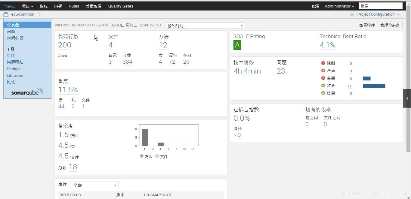 (2) 重复代码(duplications):程序中包含大量复制粘贴的代码是质量低下的表现 (3) 单元测试(unit tests):统计并展示单元测试覆盖率
