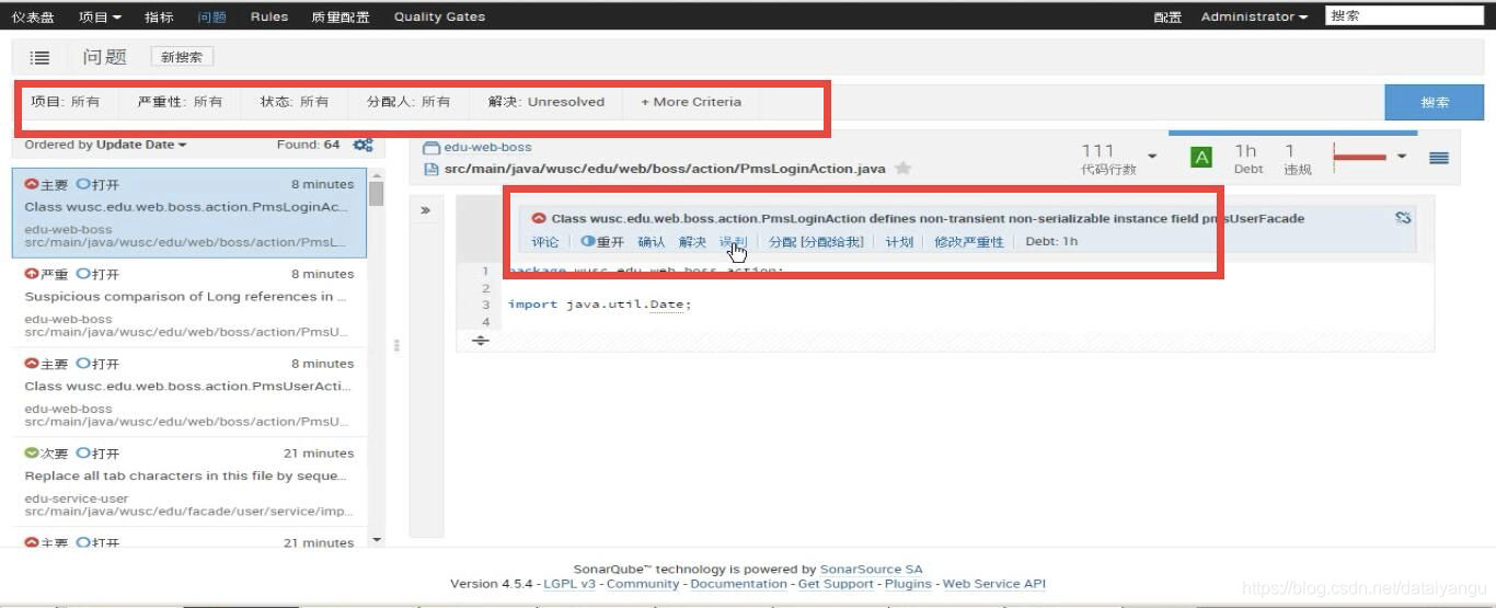 如图能够对错误进行设置是佛解决,修改严重性,评论等,也可以对错误根据严重性、分配人等进行筛选。