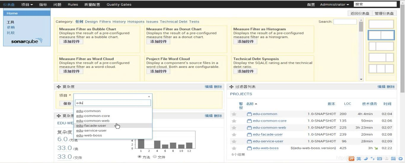 把所有的项目都构建到sonar上面==>刷新==>项目==>所有项目==>出现所有的项目