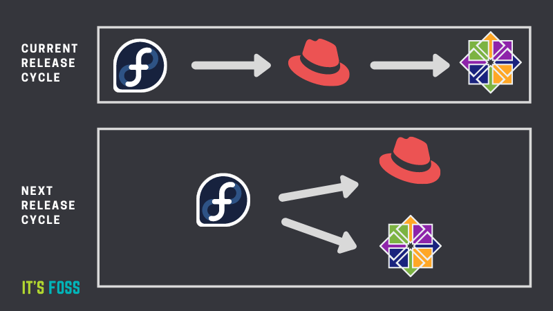 因此,Fedora成了RHEL和CentOS的未来主要版本的测试场。与此同时,CentOS Stream为此扫清了道路:为RHEL和CentOS的未来次要版本做贡献。